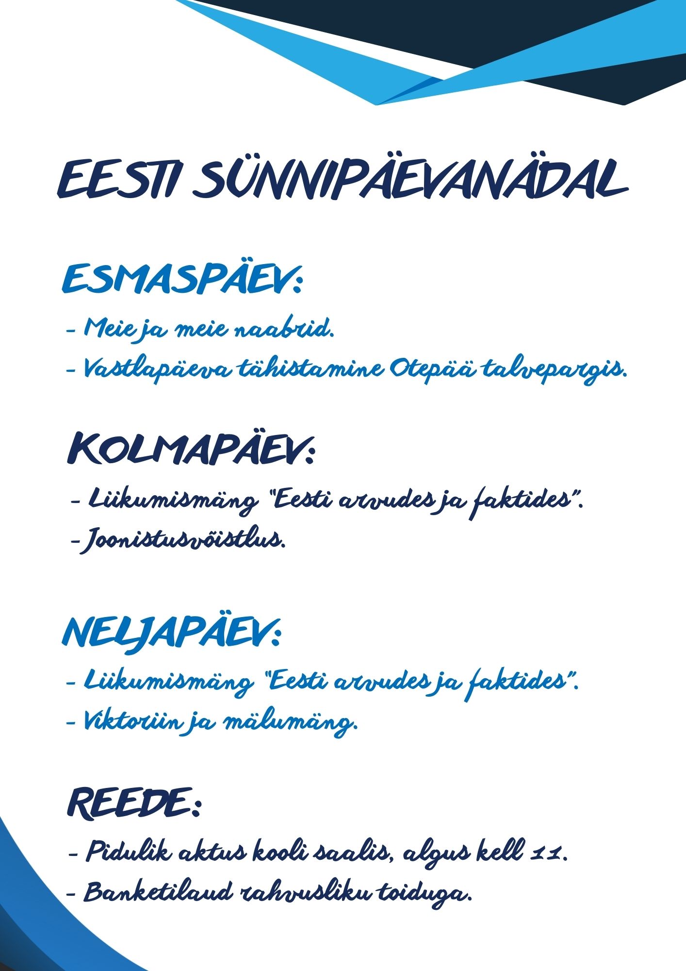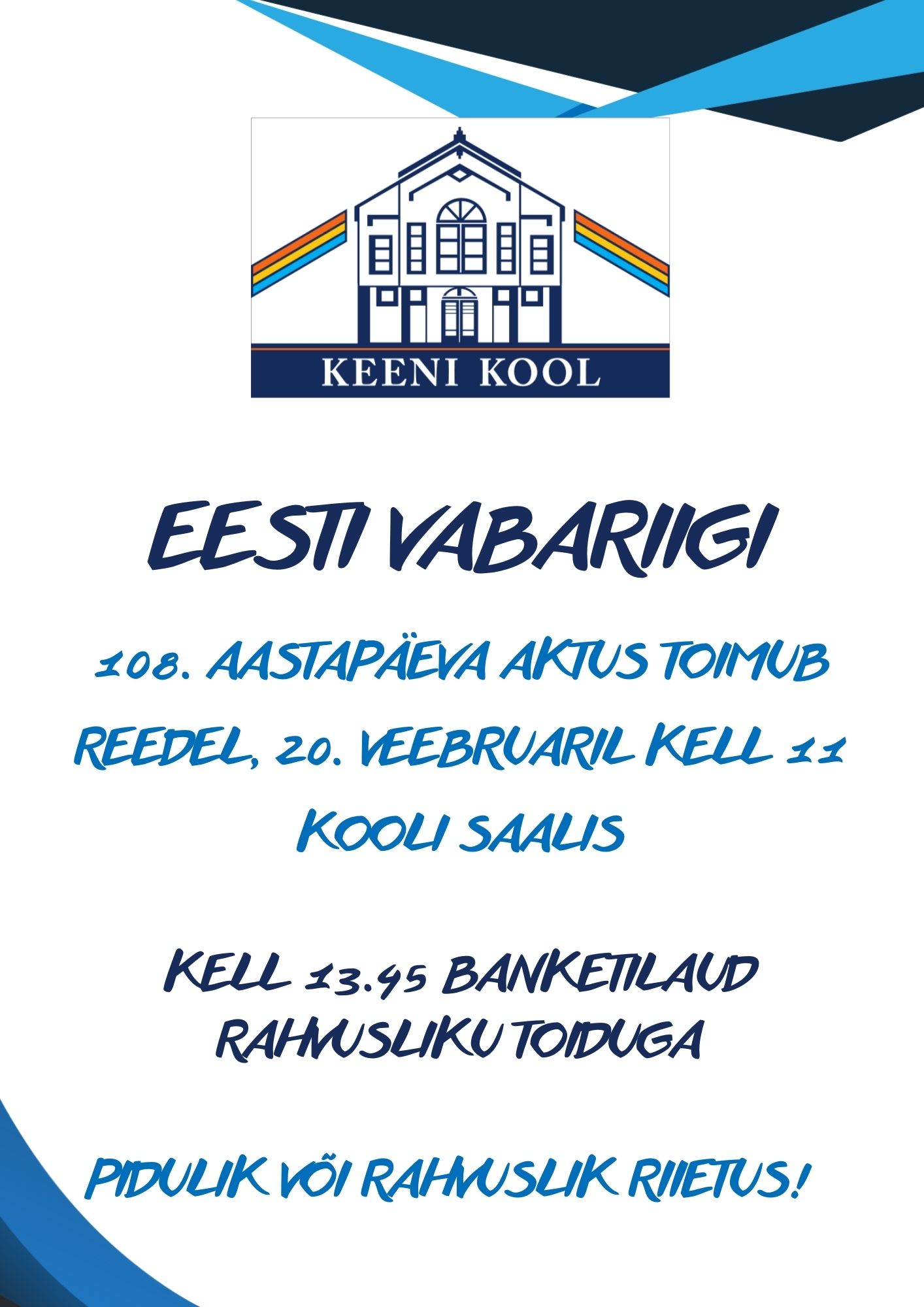 20.02.2026 - Eesti Vabariigi aastapäevale pühendatud aktus, algus kell 11.